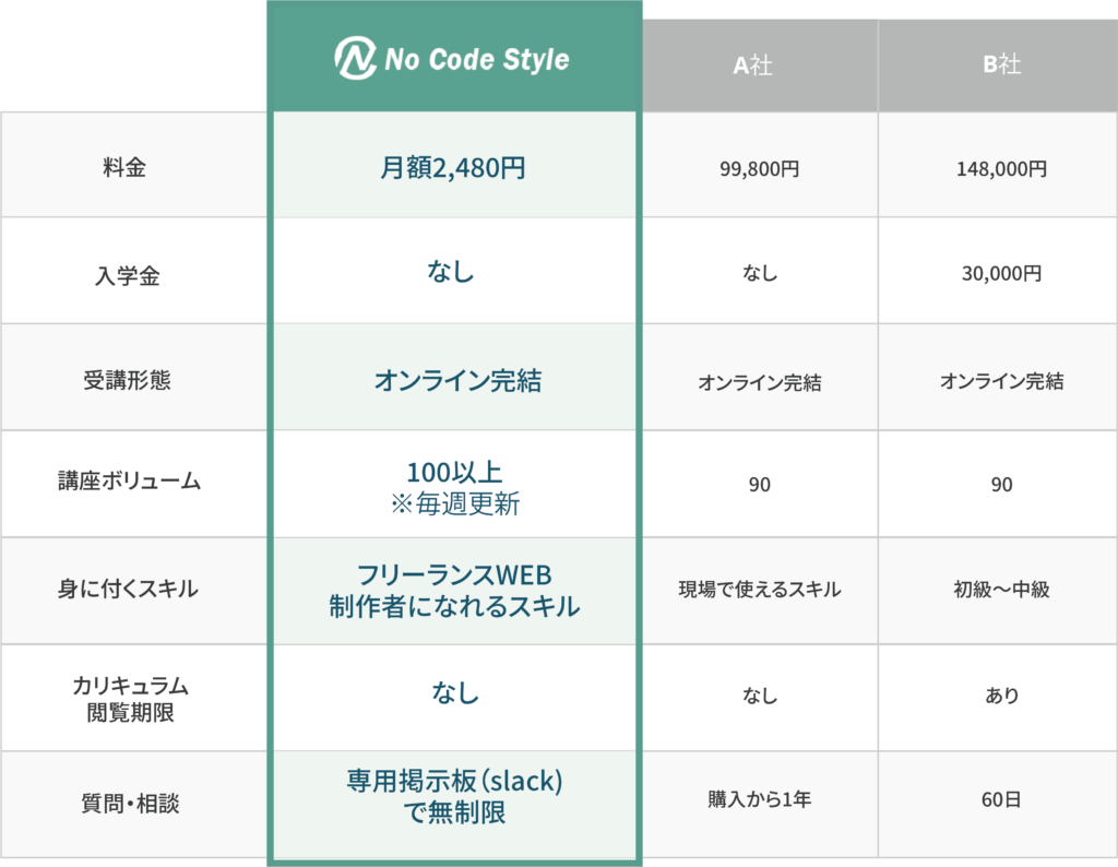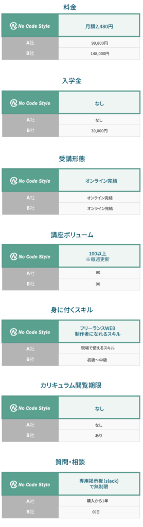 No Code Styleが教えているのはノーコードによるWeb制作なので、コードを覚える必要がありません。